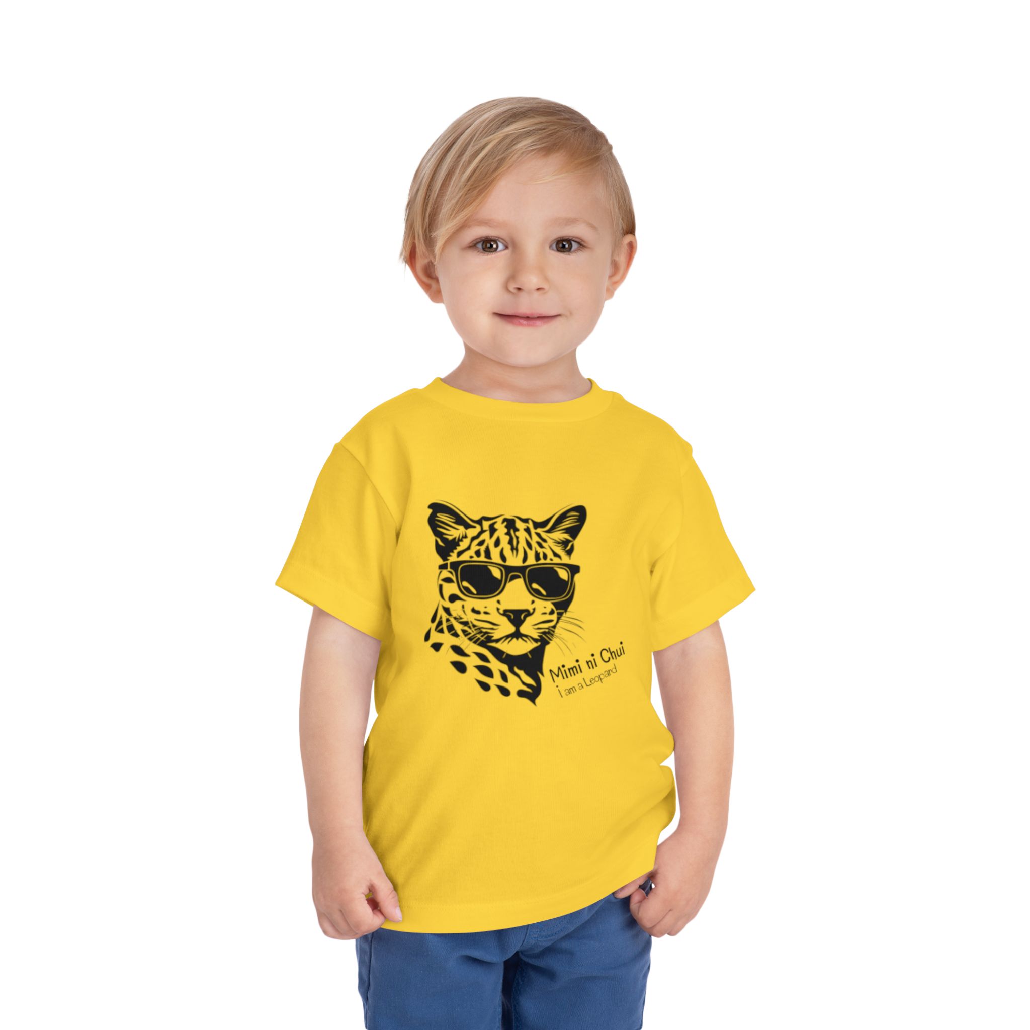 Empower your little one with the quiet confidence of the African leopard—fierce, graceful, and purposeful. This bold Toddler Short Sleeve Tee features a striking chui graphic and Swahili affirmation that speaks volumes.